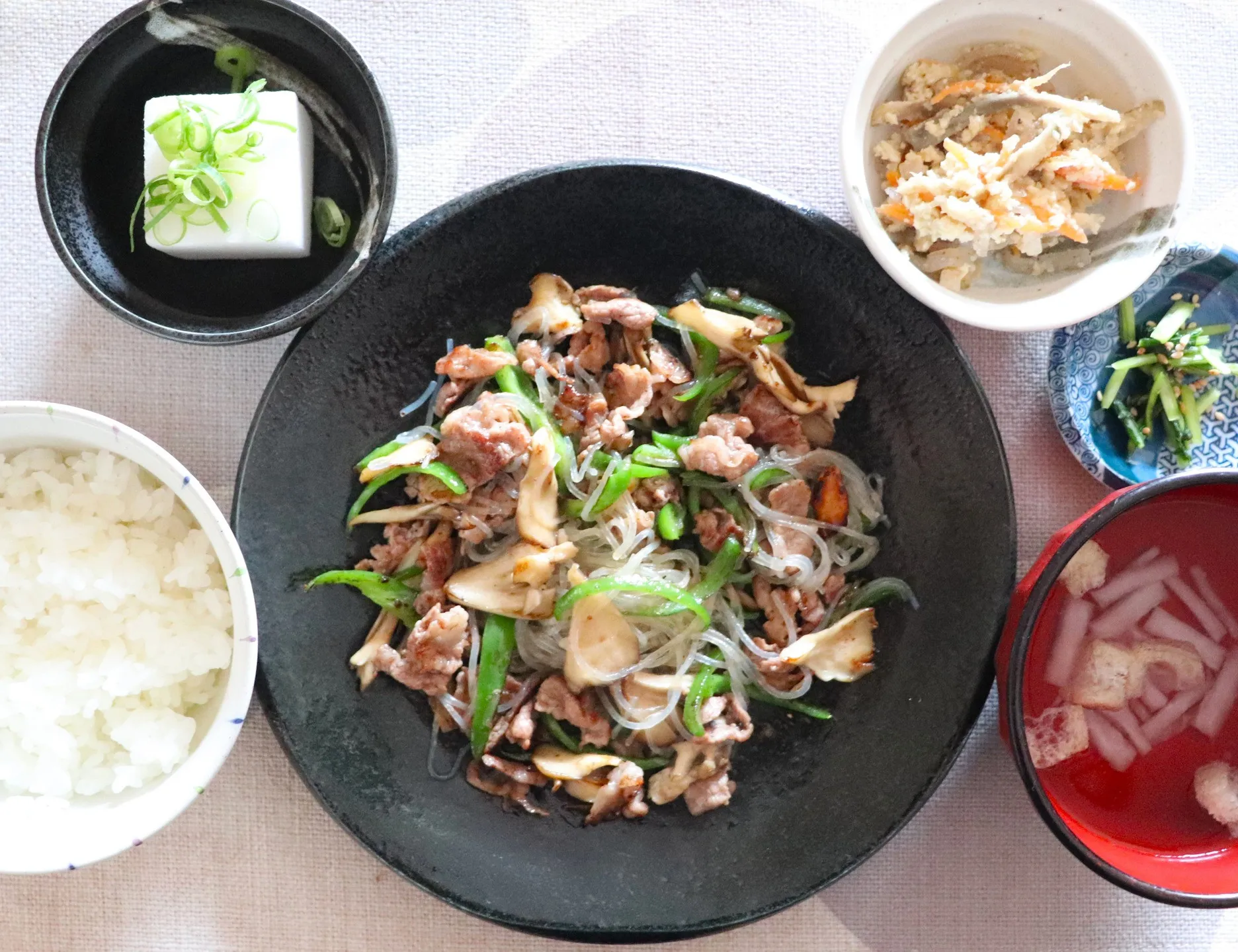 本日のランチは黒毛和牛のチャプチェ!