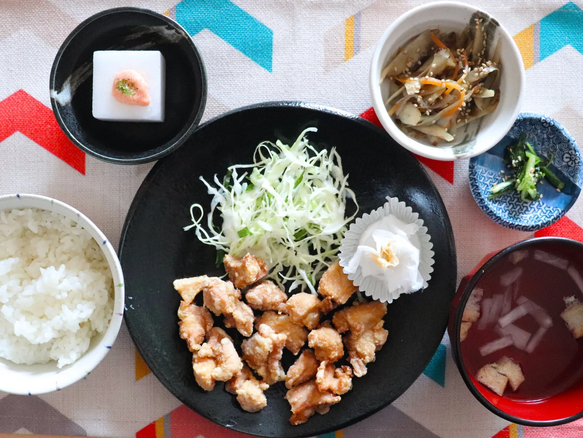 本日のランチは鶏もも唐揚げおろしポン酢!