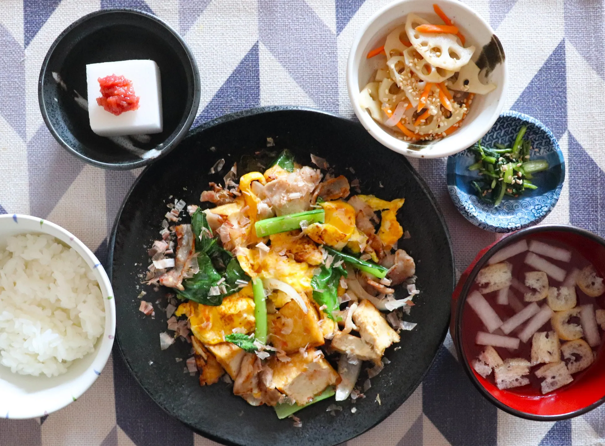 本日のランチは豚バラ厚揚げたまごのチャンプル!