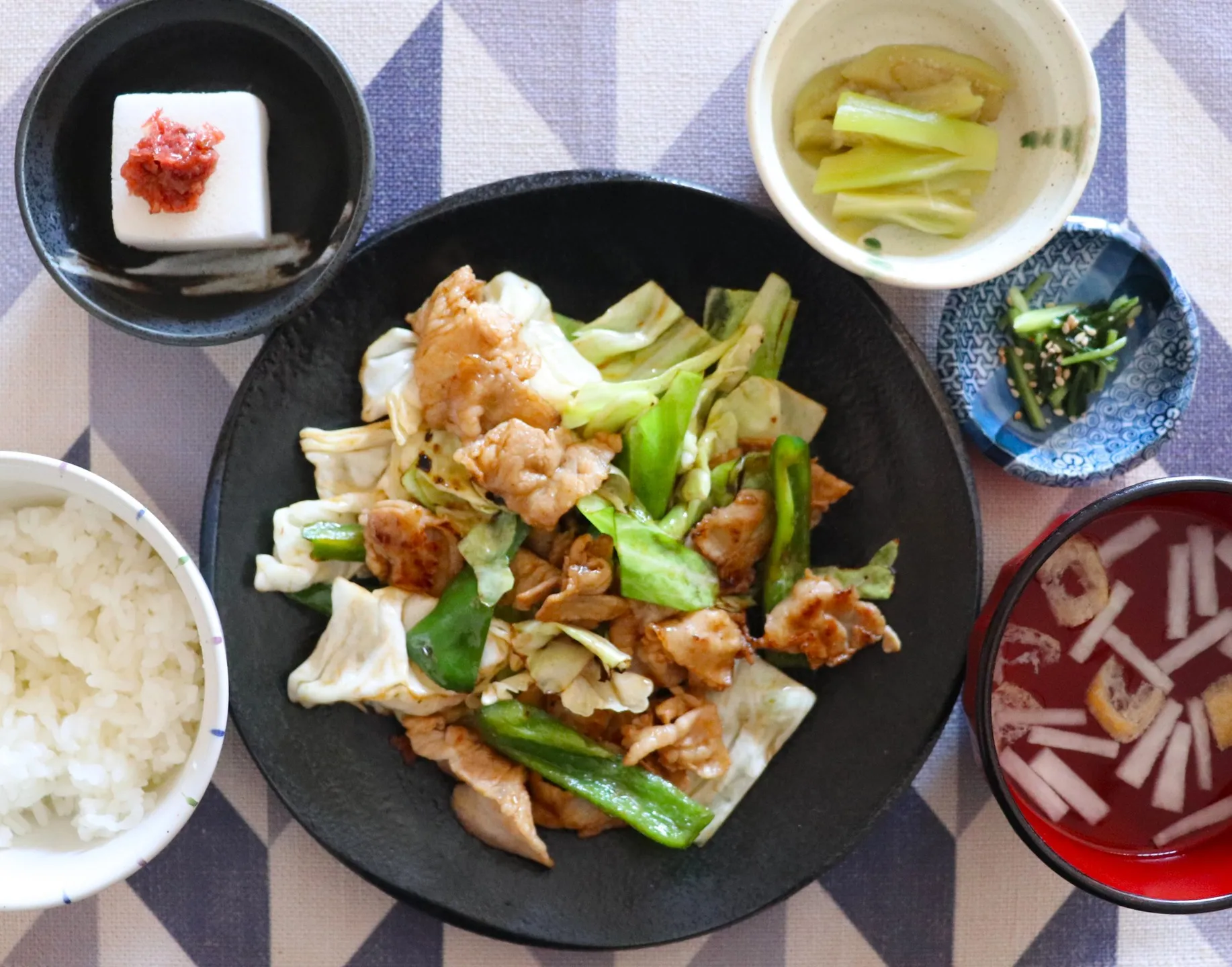 本日のランチは豚バラキャベツの回鍋肉風!