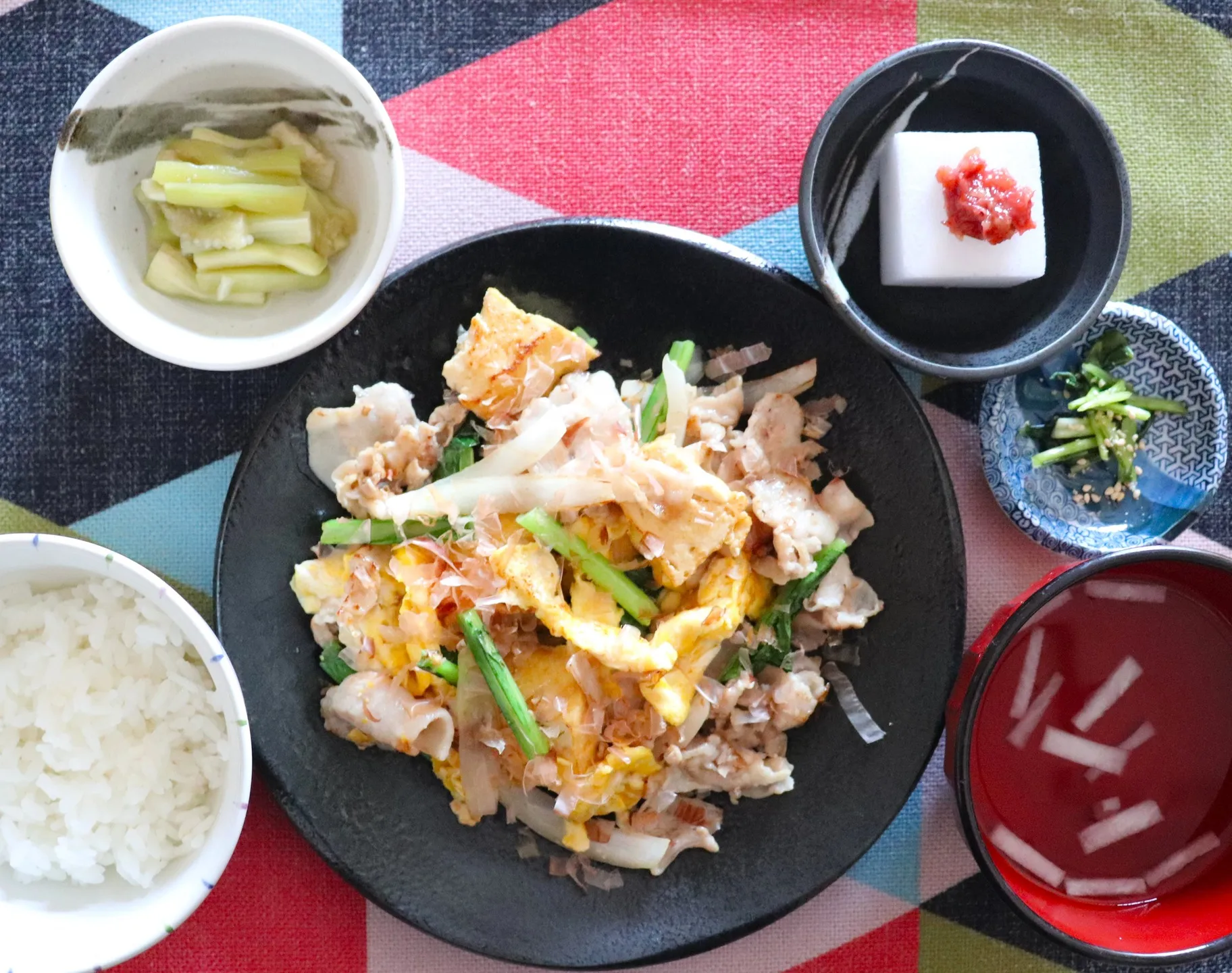 本日のランチは豚バラ厚揚げたまごのチャンプル!