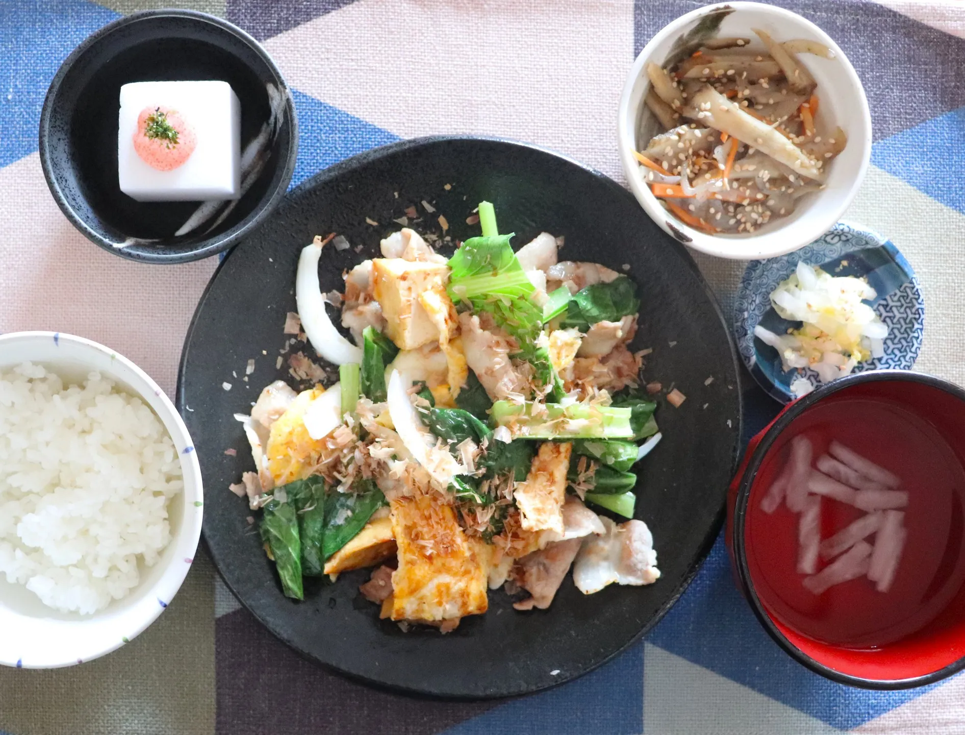 本日のランチは豚バラ厚揚げたまごのチャンプル!